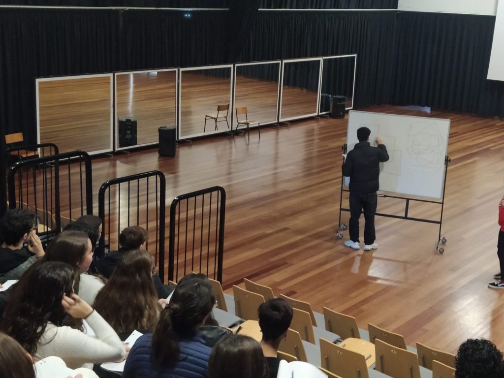 Em duas sessões, a Dra Inês Guimarães, de uma forma divertida, interativa e descontraída, brindou os alunos de 10 ano com a sua boa disposição e arte de transmitir a importância e a utilidade da teoria dos grafos no nosso dia a dia, desde as redes sociais à coloração de mapas.